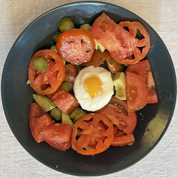15/10/2023 Domenica Insalata di pomodori e uovo in camicia |